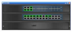 · 设备真实面板图、端口流量与协议分析,组合设置主干端口,设备管理仪表盘可对设备CPU 、内存、温度、风扇状态进行监测, 监测设备配置路由表、并可对交换机路由器配置进行群发 。