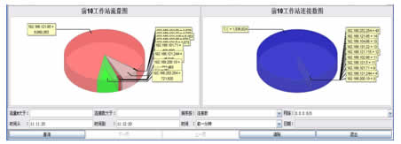 系统提供按流量和网络连接(会话)数的统计排名列表。应用主动病毒防御策略,可以设置网络连接数或流量阀值,对超出阀值的用户自动实施相应的定制策略,例如自动采取通知、控制连接、提前警告等等。